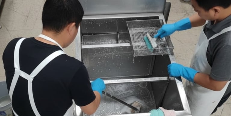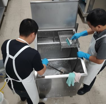 Retiro profesional, desinfección y mantenimiento preventivo de trampas de grasa para restaurantes y cocinas industriales.